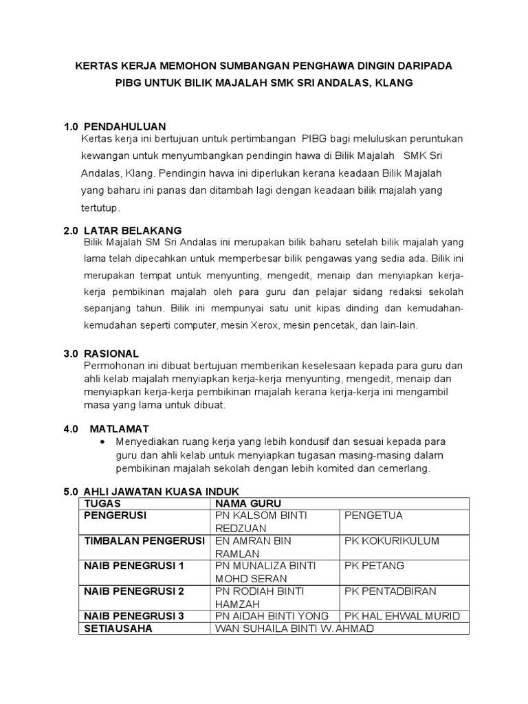 Contoh Kertas Kerja Mohon Sumbangan from 0.academia-photos.com Kertas kerja adalah suatu daftar atau tempat pencatatan neraca saldo, penyesuaian serta penggolongan akun buku besar, yang dipergunakan sebagai alat bantu untuk menyusun laporan keuangan. Panjang surat lamaran kerja umumnya dapat muat (fit) dalam satu sisi kertas tanpa tulisan terlihat terlalu penuh atau padat. Contoh kertas kerja permohonan peruntukan contoh 37 cute766. Pangeran antasari no.14 jakarta selatan telp. Kertas kerja mohon sumbangan bilik kaunseling. Panjang surat lamaran kerja yang lebih dari satu halaman sangat jarang, kecuali kamu melamar di bidang yang sangat teknis, misalnya: Tenga kerjasenaraikan keperluan tenaga kerja untuk bahagian operasi. Terdapat banyak cara untuk membuat kertas kerja untuk perniagaan, dan terdapat banyak format kertas kerja.